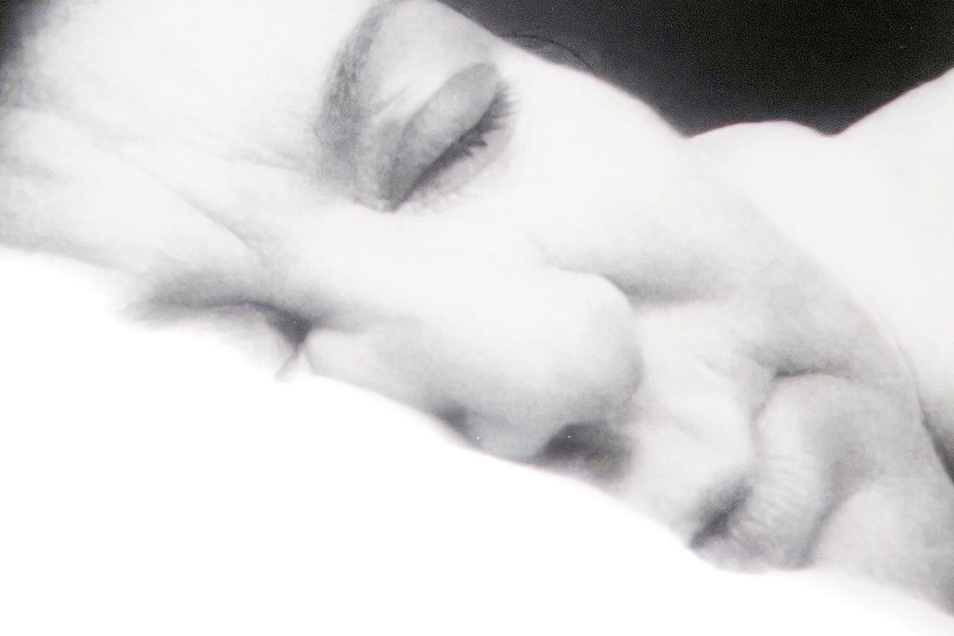 Notre artiste a travaillé à plusieurs reprises la figure de la dormeuse, version contemporaine adoucie de la gisante. Ces deux premières heures au Salon reçoit, elle dort dans une couchette faite de bottes de foin.